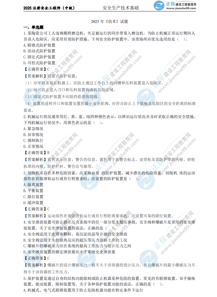 2025年中級安全工程師《生產(chǎn)技術(shù)》考試結束,考生們最關(guān)心的肯定是這一科目試題及答案。建設工程教育網(wǎng)考后會(huì )依據考生反饋,及時(shí)匯總中級安全工程師《生產(chǎn)技術(shù)》的試題及答案,期望能給各位考生提供幫助!