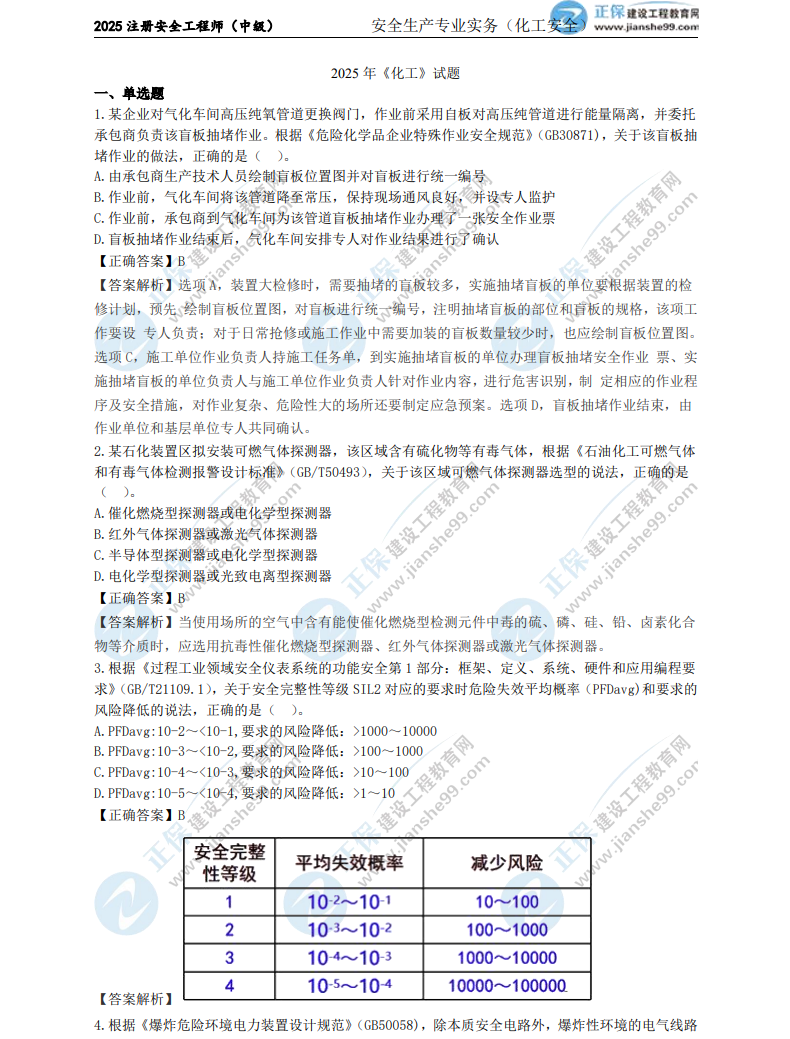 2025年中級安全工程師《化工安全》考試結束,考生們最關(guān)心的肯定是這一科目試題及答案。建設工程教育網(wǎng)考后會(huì )依據考生反饋,及時(shí)匯總中級安全工程師《化工安全》的試題及答案,期望能給各位考生提供幫助!
