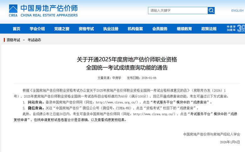 2025年房地產(chǎn)估價(jià)師考試成績(jì)查詢(xún)入口開(kāi)通!