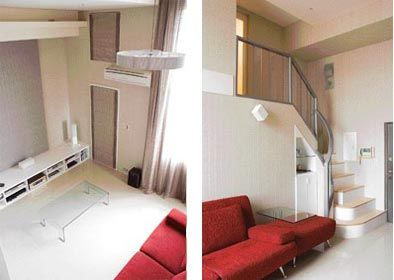 5 挑高空間更顯大器原本面積不大,又有夾層,特別將客廳挑高到四米二,讓空間感覺(jué)向上延伸,搭配整面的電視墻布飾壁面,也更突顯出現代空間的大器品味。