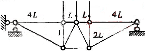 2.如圖為某桁架的計算簡(jiǎn)圖,各桿件長(cháng)度及節點(diǎn)力如圖中所示,其中桿1的內力為()。