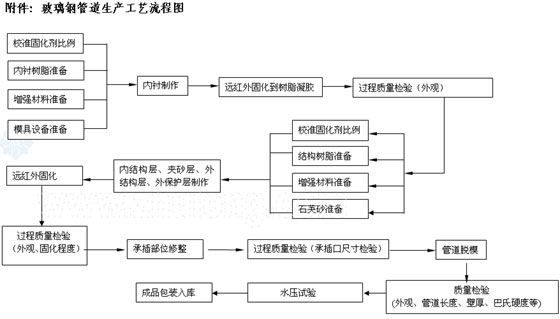 2. 玻璃鋼管道制作過(guò)程簡(jiǎn)述(參見(jiàn)附件:玻璃鋼管道生產(chǎn)工藝流程圖)