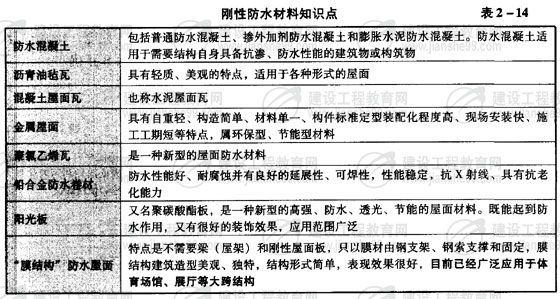 二、剛性防水材料的種類(lèi)及特點(diǎn)(表2-14)