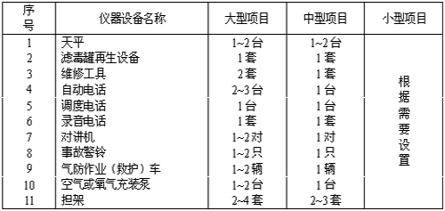 6.3.4氣防站裝備按表6.3.4配置。