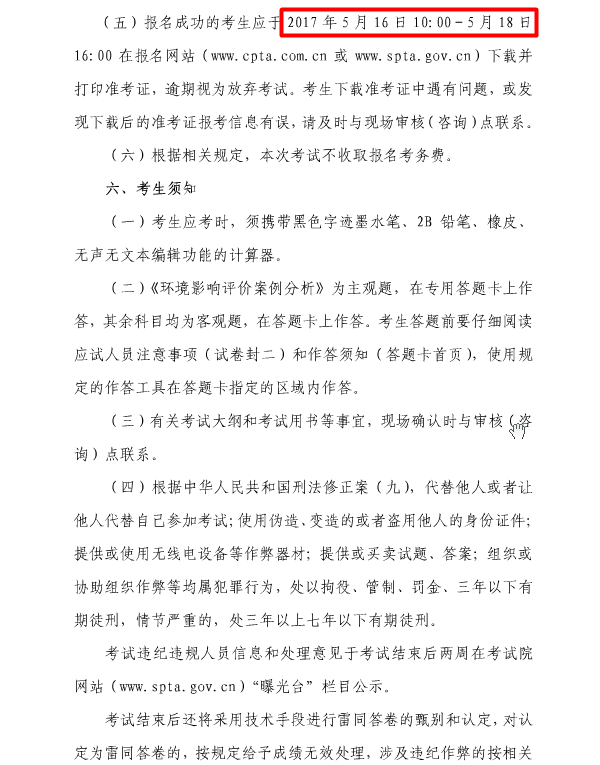 上海2017年全國環(huán)境影響評價(jià)工程師職業(yè)資格考試考務(wù)工作安排
