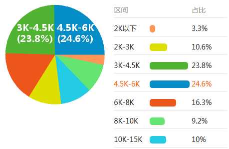 根據從某招聘網(wǎng)站近1年10011份樣本,監理工程師行業(yè)平均工資5159元,其中3k-4.5k和4.5k-6k比例最高,分別超過(guò)總數的20%.