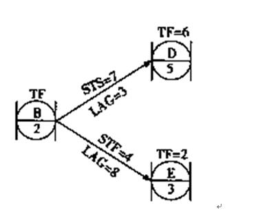 某工程單代號搭接網(wǎng)絡(luò )計劃中工作B、D、E之間的搭接關(guān)系和時(shí)間參數如下圖所示。工作D和工作E的總時(shí)差分別為6天和2天,則工作B的總時(shí)差為( )天。(2014、2011年)