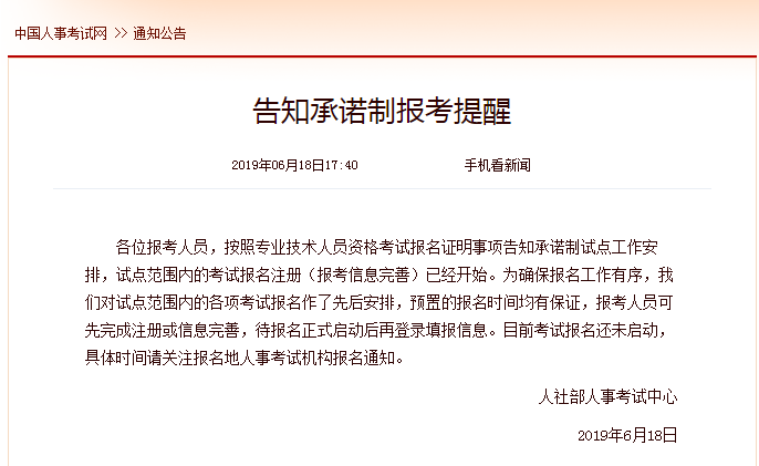 2019年6月18日,中國人事考試網(wǎng)公布了《告知承諾制報考提醒》的通知,2019年一級建造師雖然報名雖然還沒(méi)有正式開(kāi)始,但是想要報考一級建造師的考生可以開(kāi)始進(jìn)行報名注冊(報考信息完善)了。