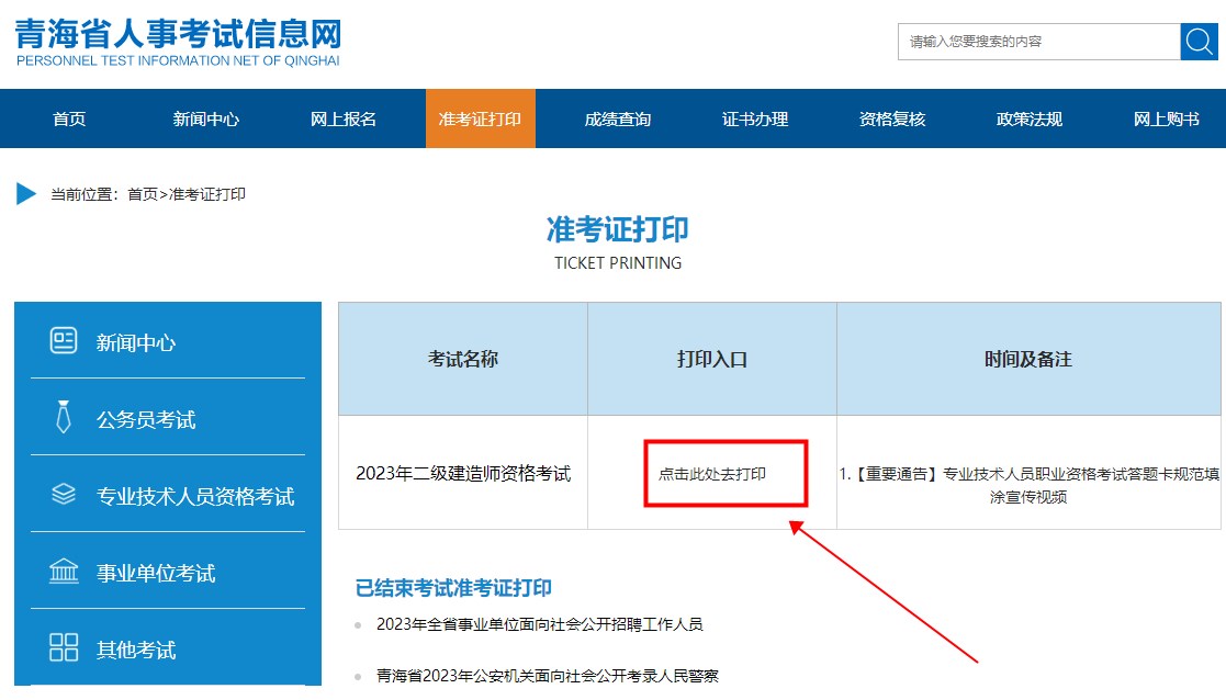 - · 青海開(kāi)放2023年二級建造師考試準考證打印入口