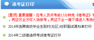 鎮江2014二級建造師準考證打印入口開(kāi)放時(shí)間為:5月14日—5月30日,請及時(shí)打印,以免錯過(guò)打印時(shí)間。