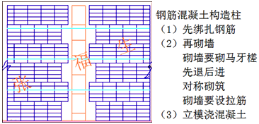 【例題】設有鋼筋混凝土構造柱的抗震多層磚房,應先綁扎鋼筋,然后砌磚墻,最后澆筑混凝土。其中,磚墻應砌成( )。
