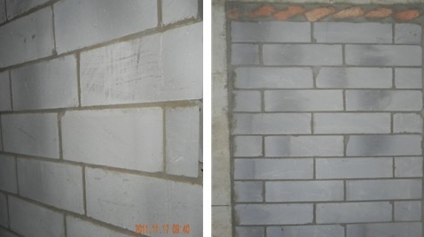 水平灰縫的砂漿飽滿(mǎn)度:磚砌體灰縫中的砂漿與磚的有效粘結程度,以磚與砂漿的接觸面面積和砂漿在磚面上有效粘結的面積的百分比表示。檢查方法:拆下墻中的磚,底面朝上,放上百格網(wǎng),數出磚上粘有砂漿的格子數,取三塊磚的平均值,80以上為合格。(百格網(wǎng)是一塊透明的網(wǎng)格片,長(cháng)寬與標準磚的尺寸一致,上面長(cháng)方向和寬方向平均劃分十等份的格子,總數剛好是一百格所以稱(chēng)為“百格網(wǎng)”)。
