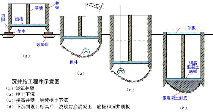 二級建造師實(shí)務(wù)復習要點(diǎn):沉井示意圖
