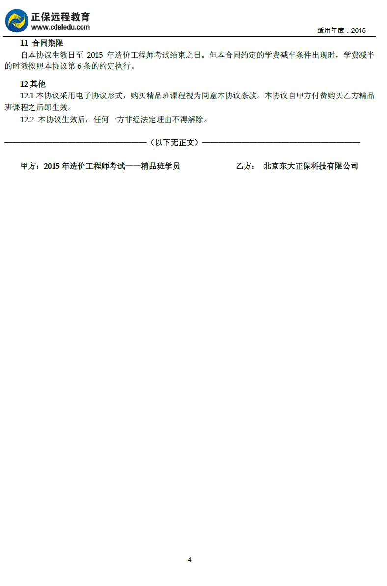 造價(jià)工程師“精品班”協(xié)議書(shū)