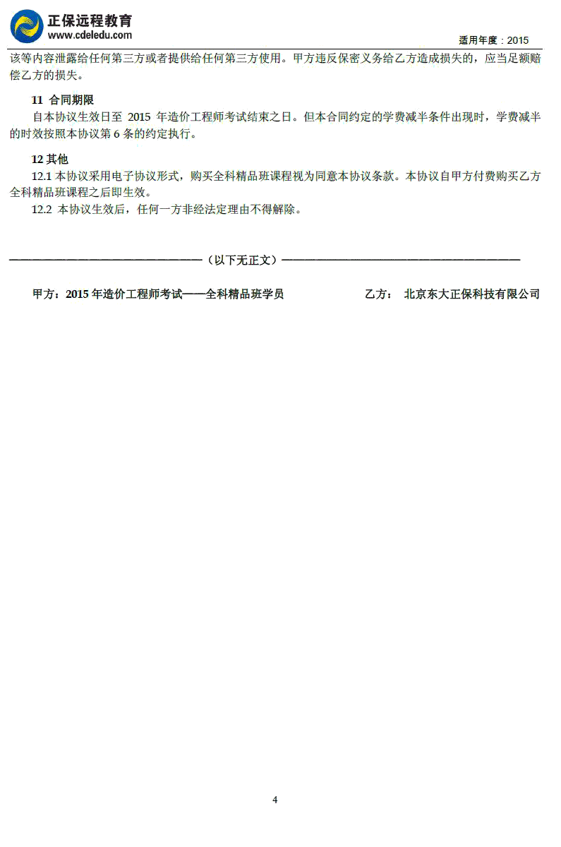 造價(jià)工程師“全科精品班”協(xié)議書(shū)