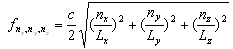 選擇任一組nx、ny、nz不同時(shí)為零的非負整數,即對應一種振動(dòng)方式。從上式可以看出,房間尺寸的選擇,對共振頻率有很大影響。