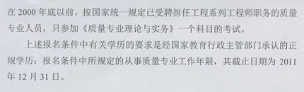 黑龍江省2011年質(zhì)量專(zhuān)業(yè)考試報名時(shí)間為2月25日至3月10