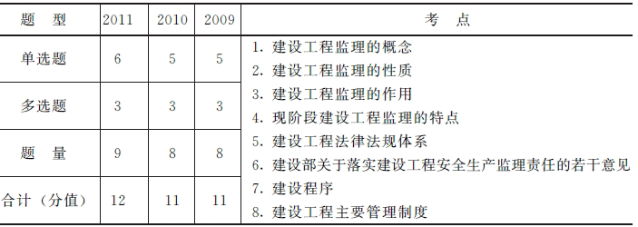 本章考生主要掌握有關(guān)建設工程監理的性質(zhì)、作用和特點(diǎn),這是歷年考試的重點(diǎn),尤其是建設工程監理性質(zhì)的內容。近年來(lái)有關(guān)建設程序和建設工程管理制度的內容也成為了命題的重點(diǎn),考生也必須掌握。本章在試題中所占分值在11分左右。