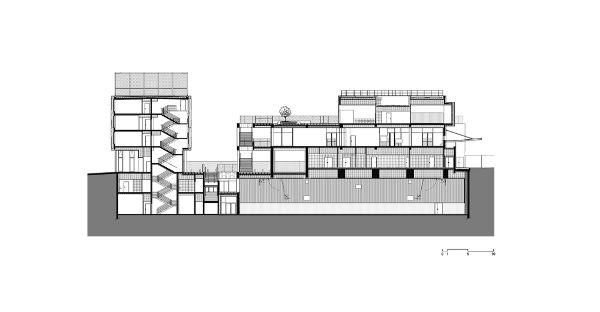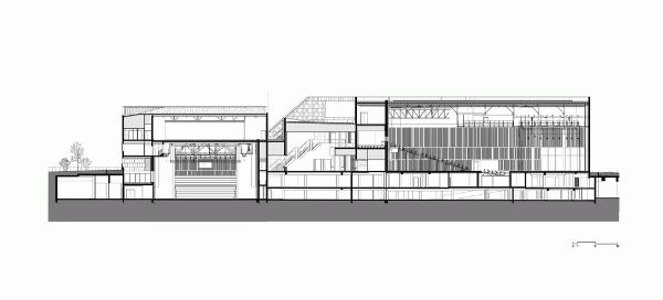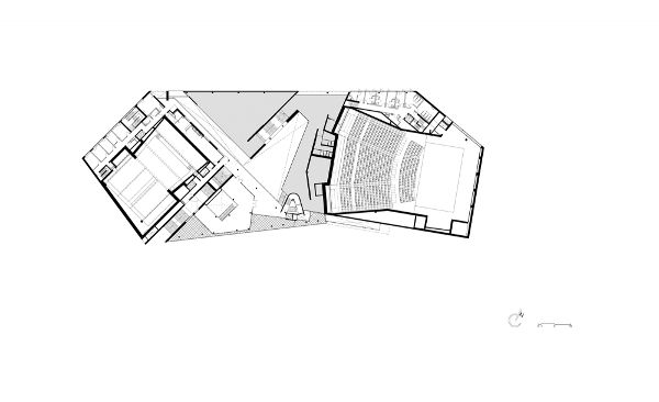 “活動(dòng)”大樓中的兩個(gè)禮堂呈一定角度設置,這一舉措從建筑從形體上表明了對城市理念的支持——邀請人們參與到歡慶活動(dòng)中來(lái)。