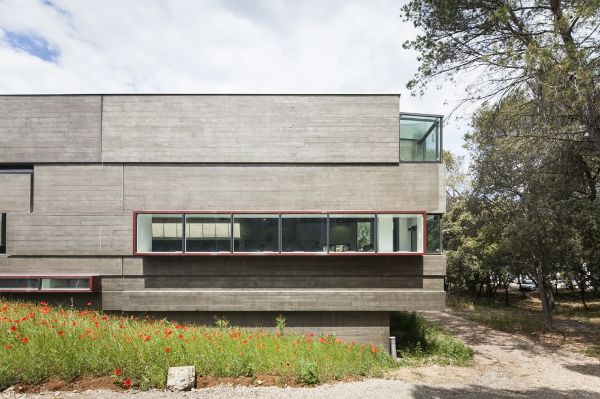 新建筑的設計特點(diǎn)強調了特殊的周邊景色:墻體由百葉窗形的混凝土和預制鋼筋混凝土板構成,上面雕刻了大片的浮雕造型,與附近的采石場(chǎng)非常相似。這些墻體通過(guò)不同的突出構件形成了陰影,陰影的多少取決于混凝土板之間的各種深度。