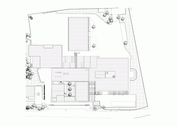 帶頂的庭院和屋頂延伸到了建筑入口的上方,在不同建筑之間建立了聯(lián)系。