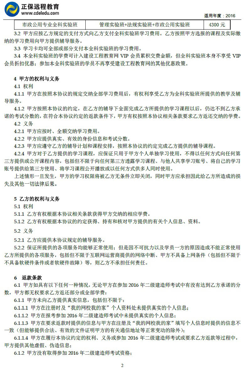二級建造師“全科實(shí)驗班”協(xié)議書(shū)