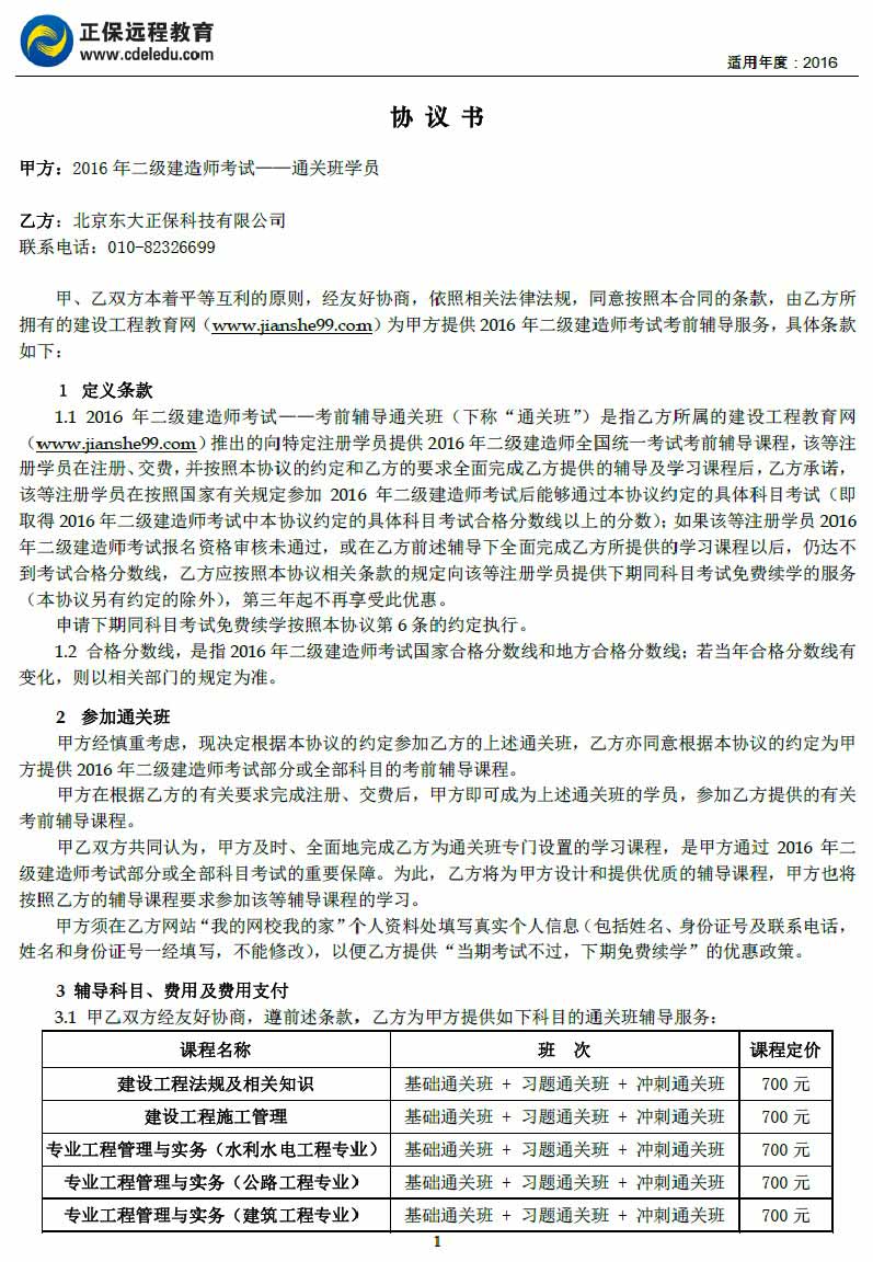 二級建造師“通關(guān)班”協(xié)議書(shū)