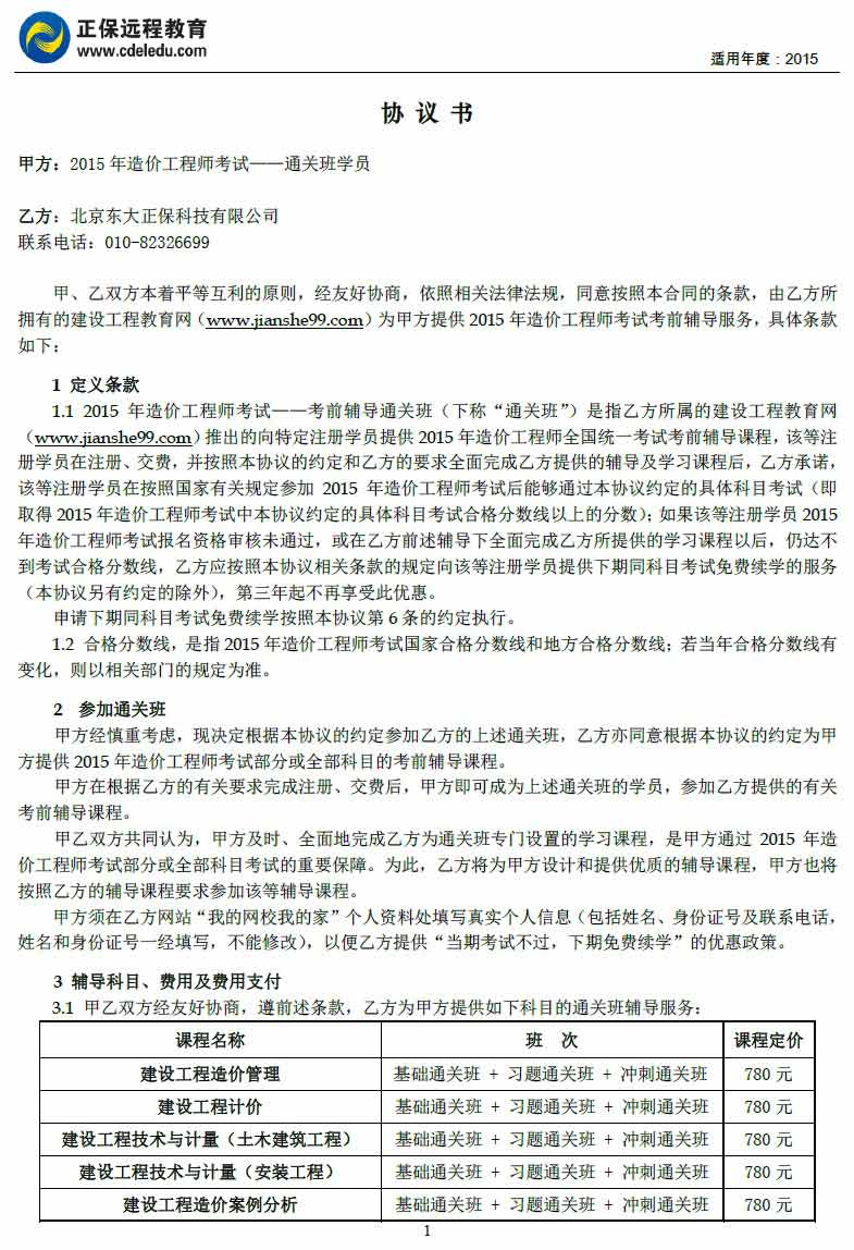 造價(jià)工程師“通關(guān)班”協(xié)議書(shū)