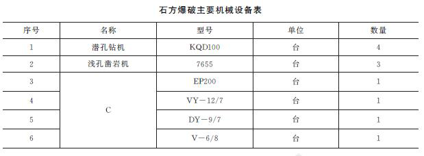 施工單位根據爆破施工方案、工程量、施工進(jìn)度計劃、施工質(zhì)量要求、現有機械技術(shù)狀況等配置了機械設備,石方爆破主要機械設備如下表: