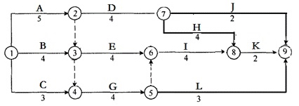 【答案解析】本題考查的是雙代號網(wǎng)絡(luò )計劃。關(guān)鍵線(xiàn)路為:A→D→H→K,A→E→I→K和A→G→I→K,共3條。參見(jiàn)教材P123.