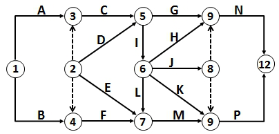 【答案解析】本題考查的是雙代號網(wǎng)絡(luò )計劃。選項B,有①和②兩個(gè)起點(diǎn)節點(diǎn)。選項D,有多余虛工作②→③和②→④。選項E,有兩個(gè)節點(diǎn)⑨。參見(jiàn)教材P123~124.
