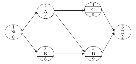 某單代號網(wǎng)絡(luò )計劃如下圖,工作A、D之間的時(shí)間間隔是()天。