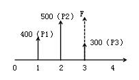 于是,F=400(F/P,12%,2)+500(F/P,12%,1)+300=400×1.2544+