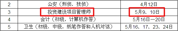 導語(yǔ):2015年投資建設項目管理師考試時(shí)間確定為5月9、10日。