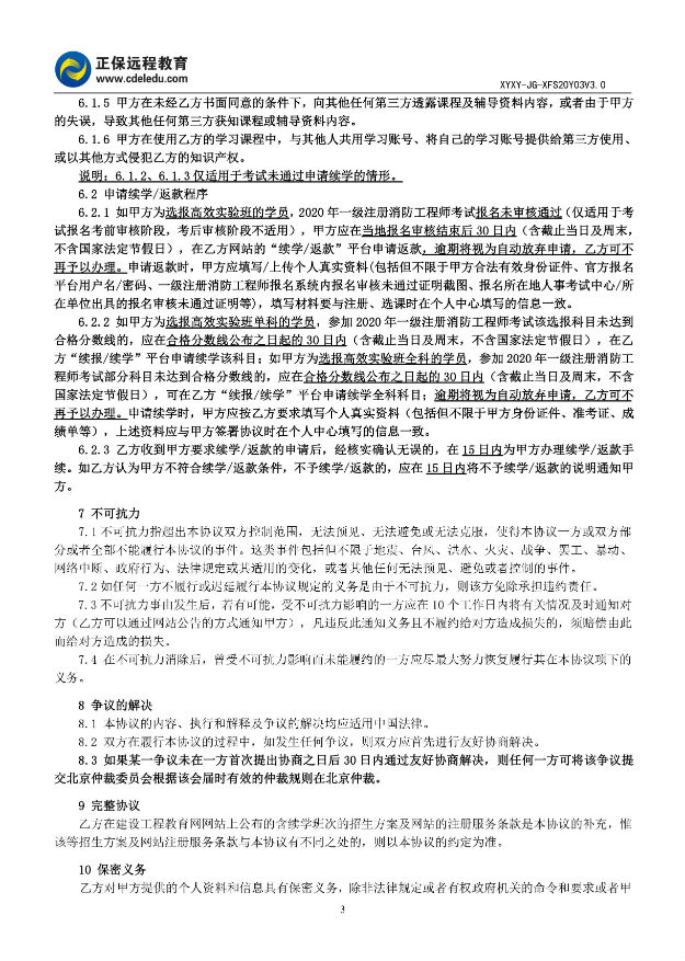 2020年一級注冊消防工程師高效實(shí)驗班協(xié)議書(shū)