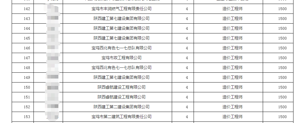 2021年02月寶雞市一級造價(jià)師技能提升補貼人員名單公示