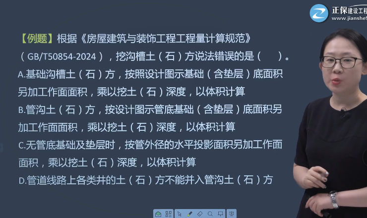 A.管溝土(石)方無(wú)管底基礎及墊層時(shí),按管外徑的水平投射面積另加工作面面積,乘以挖土(石)深度,以體積計算
