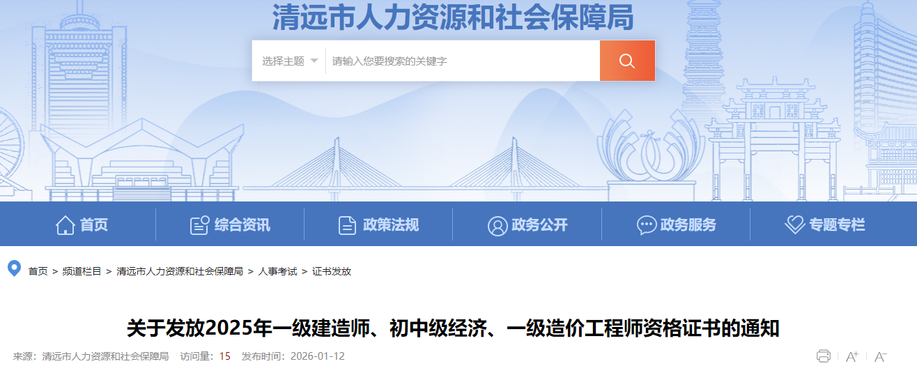 廣東省清遠(yuǎn)市2025年一級(jí)造價(jià)工程師資格證書發(fā)放通知