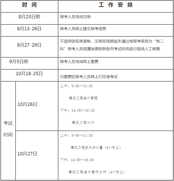 河北省2019年度一級造價(jià)師考試計劃安排時(shí)間表