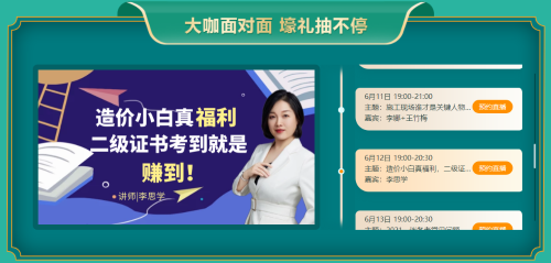 注意:購二級造價(jià)輔導課程可以用券噢!6月8日起,就可以享受課程折扣以及優(yōu)惠券雙重優(yōu)惠!