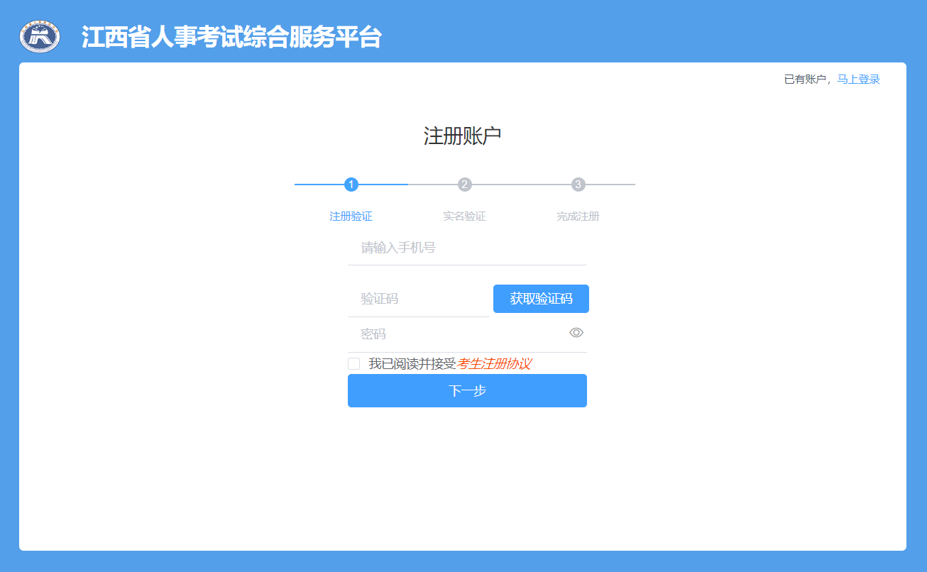 一、進(jìn)入江西省人事考試綜合服務(wù)平臺,進(jìn)行注冊。