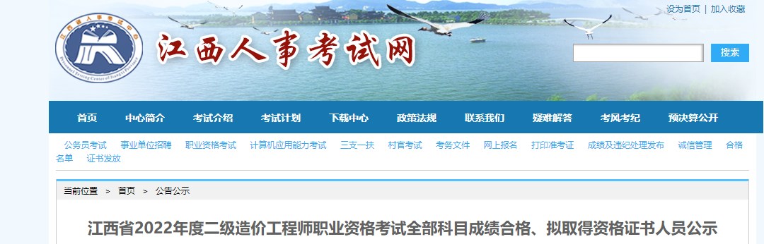 江西省2022年度二級造價(jià)工程師職業(yè)資格考試全部科目成績(jì)合格、擬取得資格證書(shū)人員公示