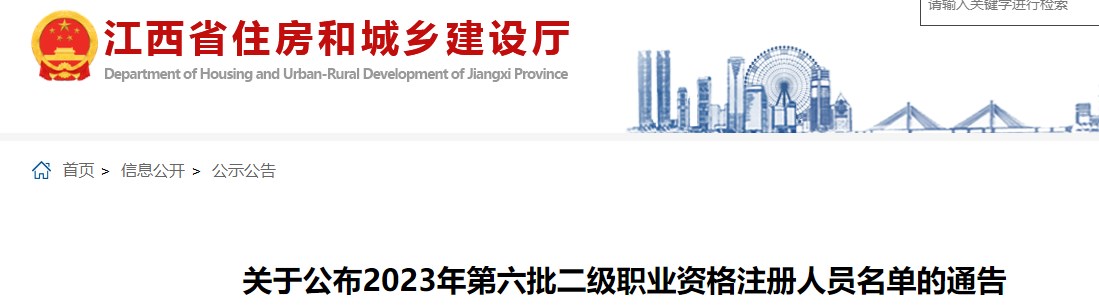 江西省關(guān)于公布2023年第六批二級造價(jià)師注冊人員名單的通告