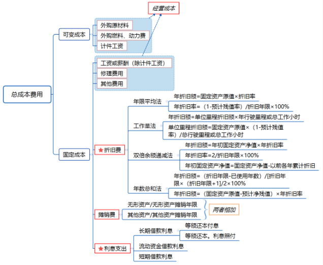 關(guān)于折舊的四大方法及利息償還的兩大方法是需要重點(diǎn)掌握的內容。如下圖所示。